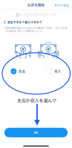 ③【支出】もしくは【収入】を選択して【OK】