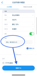 ⑧摘要欄に取引先や店名、内容等を入力して